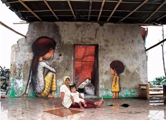 Seth结合这些国家当地的文化与民俗,创作了大量大尺度的壁画涂鸦作品。据说在创作前,Seth都会体验一段时间的当地生活,感受风土民情。